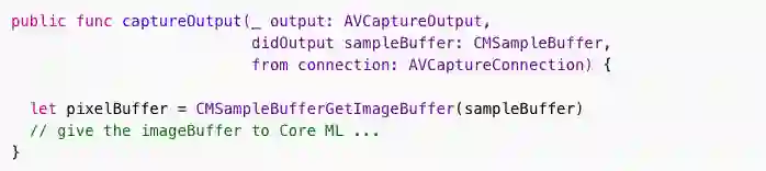 得到一个CVPixelBuffer并不重要,因为我们使用AVFoundation来捕获实况视频,调用AVCaptureVideoDataOutput,可以简单地执行以下操作: