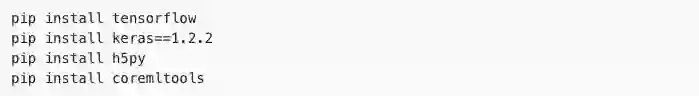 这些都是我们要用到的包。现在我们可以为Core ML创建一个虚拟环境。我们要把所有Python包装到这个虚拟环境 - 这样和其他版本的python相隔离,不会影响其他版本的python包。这可以让我们在同一个系统上运行不同版本的Python和Keras。