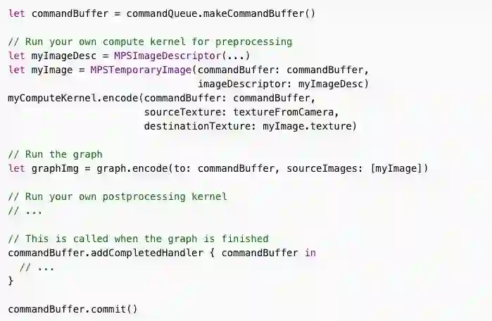 两种API之间的巨大区别在于易用性。使用Core ML,可以很容易让model上线。而MPSNNGraph复杂一些,你需要更多地了解模型的内部。但是,与“老式”MPS相比,这两者使用起来都容易得多。