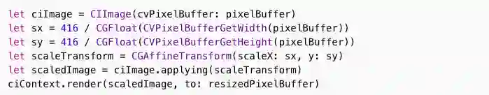但是,相机返回480×640图像,而不是416×416,所以我们必须调整相机输出的大小。不用担心,Core Image 有相关函数: