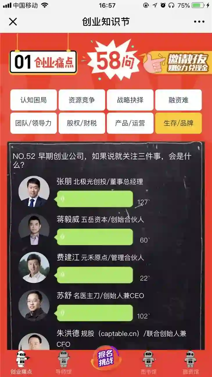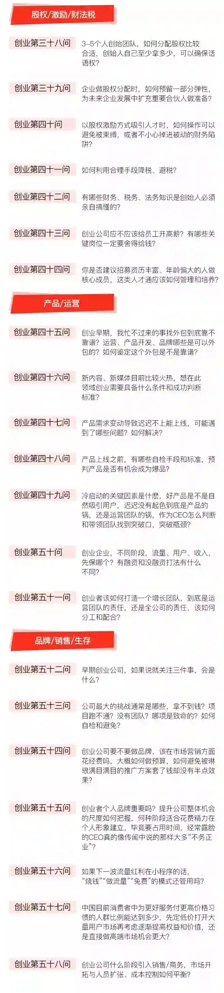 从1429中提炼出58个共性典型问题,决心帮助创业者寻找答案,大家可以自检是否遇到以下问题,或者已经找到适合自己的解决方案: