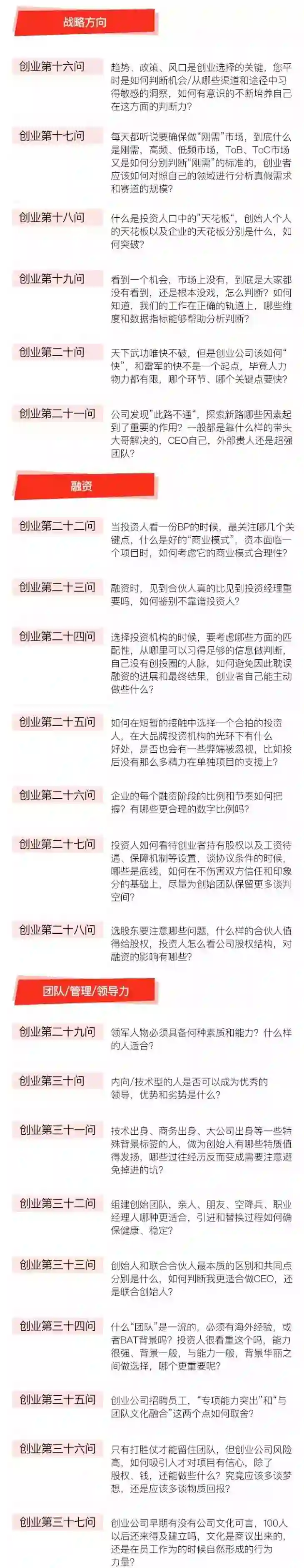 历时2个月,邀请了50位经验丰富的投资人、企业家、成功创业者、领域专家分别对以上问题进行一一解答,通过探求走过这些路的人的经验,可以为更多人带来启发,减少踩入同一个坑的可能性。