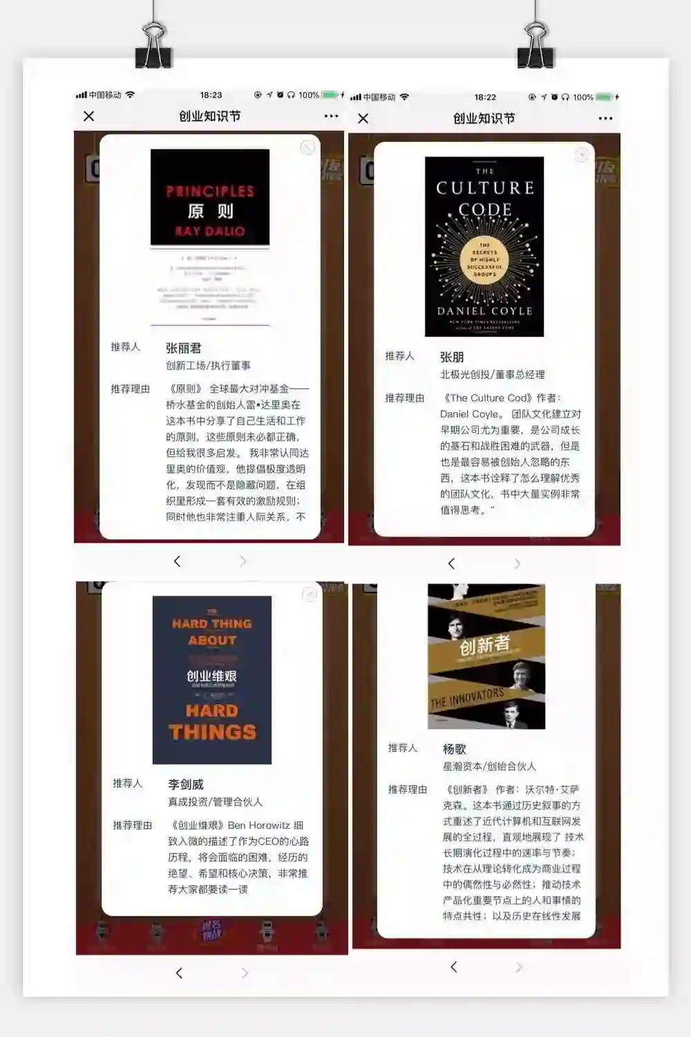 你还将看到各位大佬推荐的创业金句、读书清单以及理由: