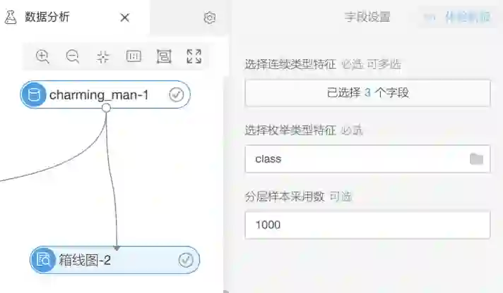 拖拽统计分析-箱线图。如图所示,选择观测的特征。