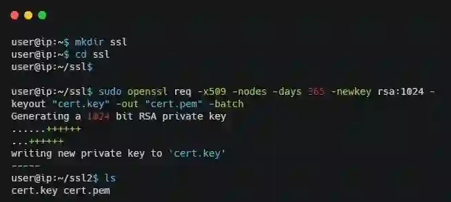 因为我们主要使用 Jupyter Notebook 进行原型开发,所以很有必要为 Jupyter Notebook 服务器设置一个密码,这样陌生人即使获取了你的公共 IP 地址也无法使用它。当然,如果你就是不想设置密码,可以跳过本节设置密码的步骤。下图展示了如何利用 OpenSSL 创建一个新的 SSL 证书。
