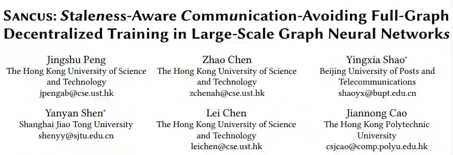本文解读了香港科技大学陈雷教授团队、北京邮电大学邵蓥侠副教授、上海交通大学沈艳艳副教授和香港理工大学曹建农教授联合发表在国际数据库与数据管理顶级会议 VLDB 2022 上的论文“面向大规模图神经网络的陈旧性感知通信回避的去中心化全图训练框架(SANCUS: Staleness-Aware Communication-Avoiding Full-Graph Decentralized Training in Large-Scale Graph Neural Networks)”,该论文获得了大会最佳研究论文奖(Best Regular Research Paper)。