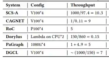 在常用的 Reddit 数据集上,上表比较了表现最差的 SANCUS 变体 SCS-A1 与五个相关 SOTA 分布式系统的吞吐量(epoch /second),包括:CAGNET、RoC、Dorylus、基于采样的 PaGraph 和 DGCL。可以看到,避免通信最少的 SCS-A1 仍然优于所有相关的 SOTA 分布式 GNN 系统。SCS-A1 策略平均吞吐量至少快 1.86 倍,每秒可以处理 10.3 个 epochs。与目标是低成本的全图分布式 GNN 训练系统 Dorylus 相比,SANCUS 的速度是 68.7 倍,成本仅为 20%。