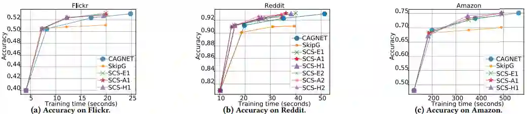 SANCUS 所有的策略变体都收敛到与全图 SOTA 工作非常接近或相同的准确率值(<0.005),甚至更高。此外,达到满意精度的时间也快得多。