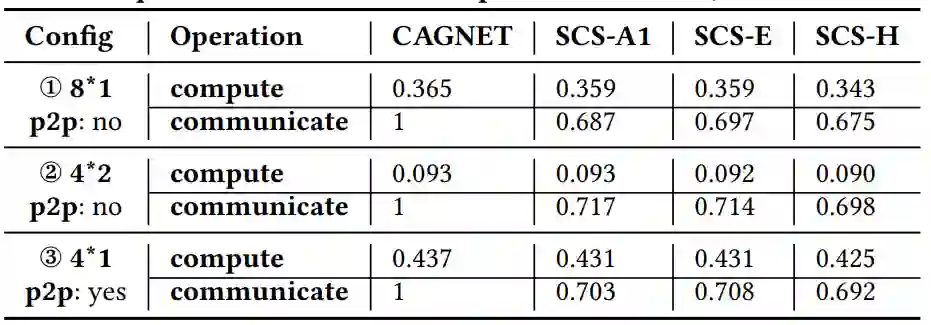 为进一步显示训练时间的改进,下表给出了 epoch 中计算和通信的具体时间。
