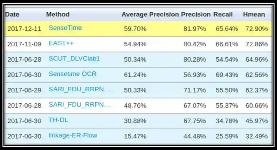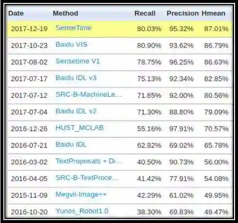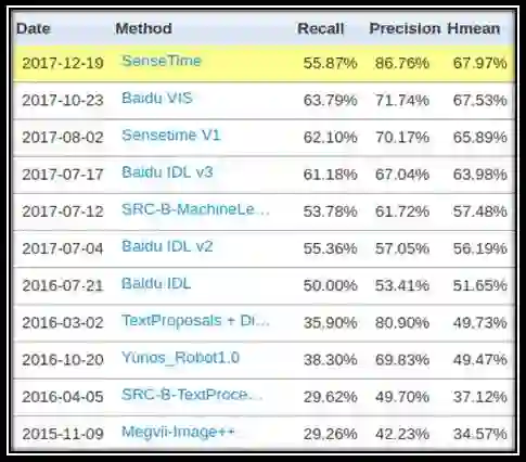 近日,在OCR识别领域最具权威的ICDAR数据集挑战中,商汤团队频传捷报,取得三项任务榜单第一。其中,最有影响力和难度最大的ICDAR2015数据集中,文字检测和端到端识别两项任务排名世界第一,超过了百度、三星等团队。在ICDAR2013数据集文字检测任务中,又斩获世界第一,超过腾讯、旷视、百度、微软、三星等国内外强队。