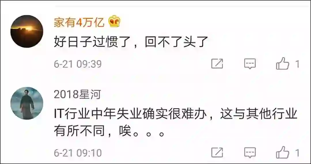 国内 IT 及通讯行业观察人士@飞象网项立刚及其他网友对这位华裔中年 IT 男的自杀颇为唏嘘,他们感叹“IT 行业中年失业确实很难办”: