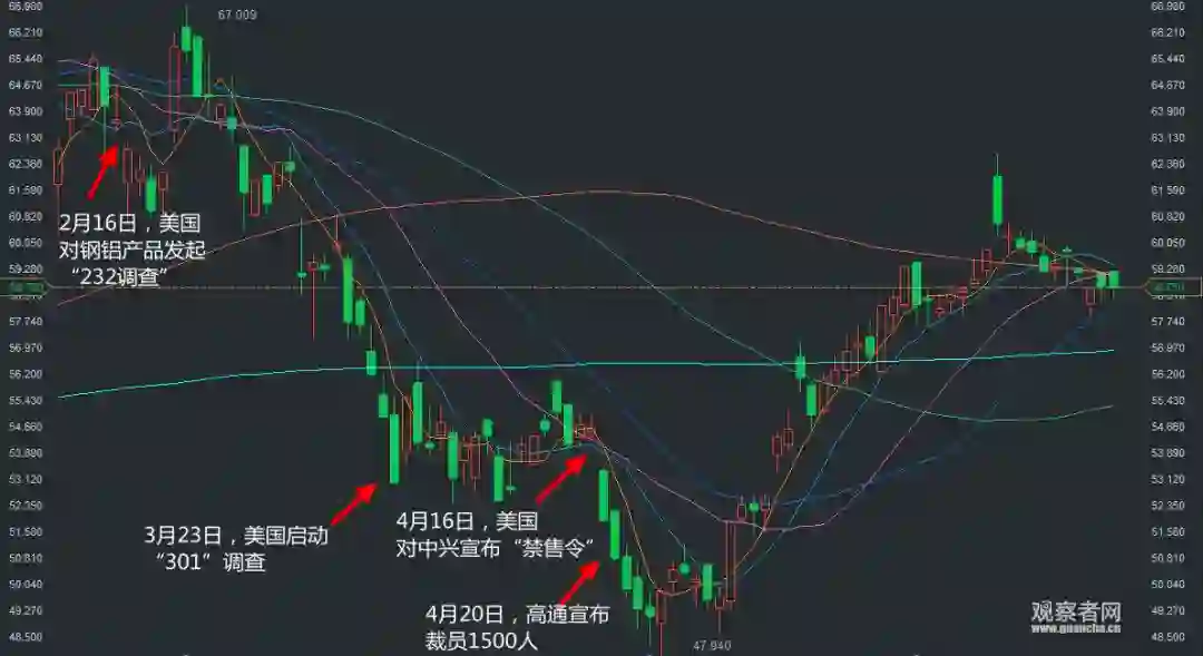 ▲高通近几个月 K 线走势(图片来源:观察者网)