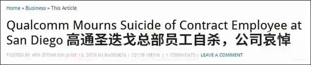 早在 2010 年和 2012 年,高通就曾发生过两起类似的员工自杀事件。