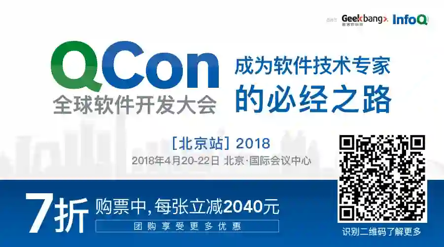 QCon 北京 2018 全新开启,聚焦最新技术热点,沉淀最优实践经验。多位主题演讲嘉宾已确认,C# 编程语言的 Program Manager、Netflix 工程总监等国际大咖共呈技术盛宴,现在报名享 7 折优惠,立减 2040 元。有任何问题可咨询购票经理 Hanna,电话:15110019061,微信:qcon-0410。
