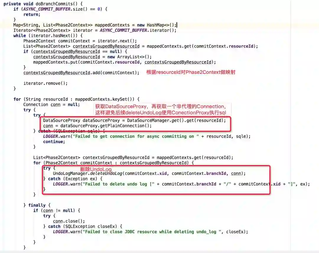 分支事务提交关键逻辑在doBranchCommits方法中: