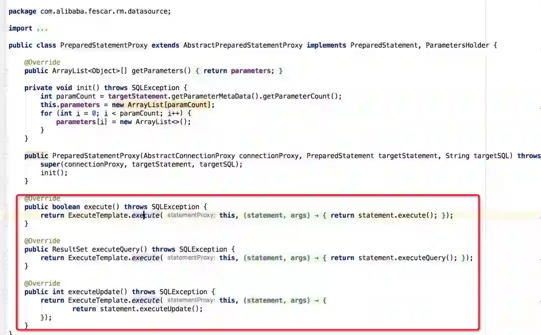 在获取到StatmentProxy后,可以调用excute方法执行SQL了: