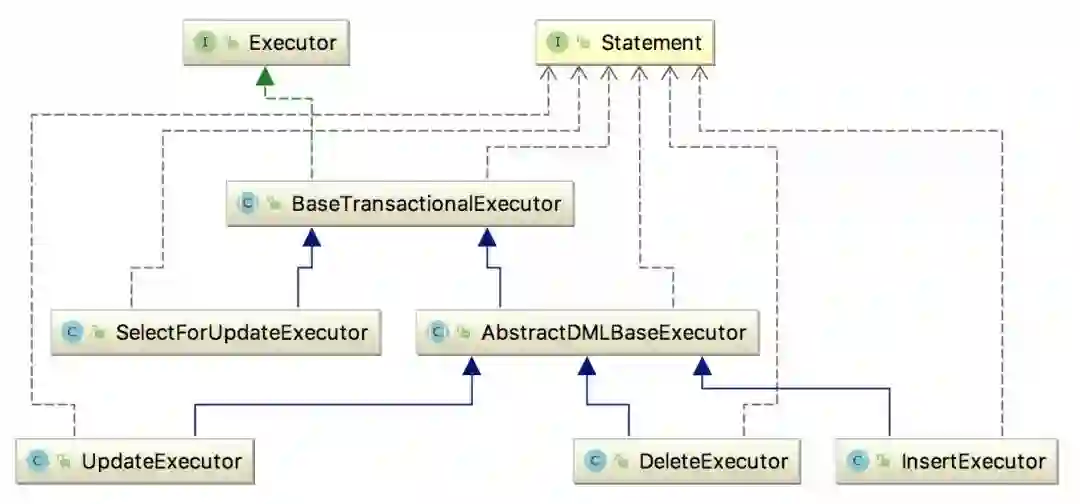 再来看一下关键的INSERT、UPDATE、DELETE、SELECT..FOR UPDATE这四种类型的sql如何执行的,先看一下具体类图结构: