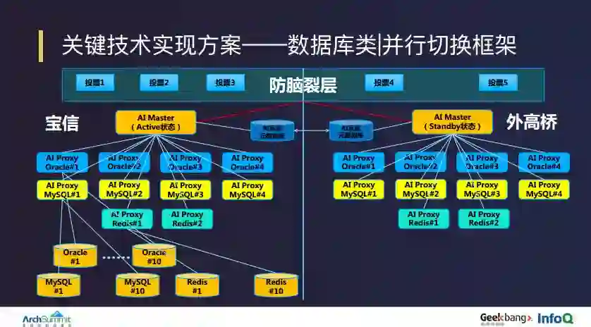 在日常活动中,我们常遇到的切换场景是核心组件的切换,比较有特色的一个场景是数据库 AI 切换。陆金所希望数据库发生故障时,能在无人工干预的情况下,智能地找到问题原因,并实现快速切换。