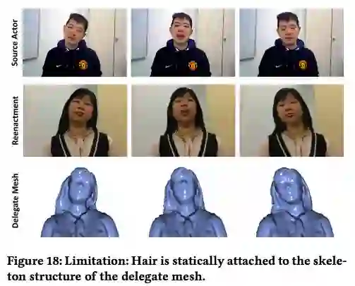 一种新的实时重现算法利用这个代理来真实地映射面部表情和眼睛注视,以及捕获的源参与者对目标参与者的头部动作和身体动作。
