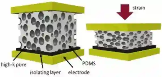 据麦姆斯咨询报道,法国国家科学研究中心(CNRS)的研究小组利用非常简单的工艺步骤和廉价的材料,设计出了一种薄电容式传感器,这种传感器由具有超高压力灵敏度的含碳弹性泡沫材料制作而成。研究者预计,这种超灵敏传感器可被设计为一种简单的贴片来监测血压,通过记录动脉脉搏波(如电容信号)并使用基于人工智能(AI)的算法将其转换成对应的压力值。这种复合材料也可用于设计机器人的压敏人造皮肤。论文中提到了一种特殊医学应用,可利用机器人“触诊”软组织器官,来检测软组织中的嵌入式结节。