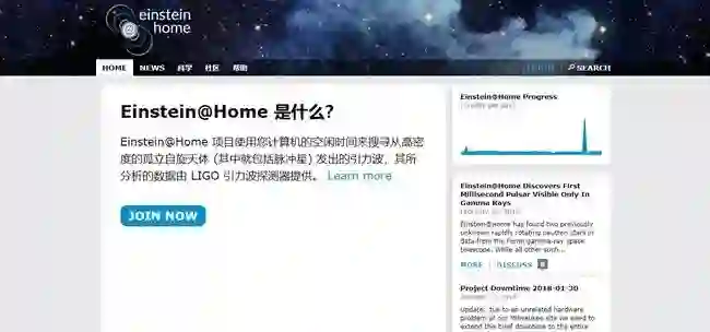 Einstein@Home项目通过使用你计算机的闲置能力,来搜寻从高密度的孤立自旋天体(其中就包括脉冲星)发出的引力波,其所分析的数据由LIGO引力波探测器提供。