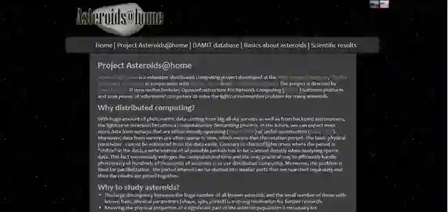 我们仍然很难发现巨型小行星何时可能与地球发生直接碰撞的运行轨迹。Asteroids @ Home旨在研究太阳系内众多小行星的形状与轨迹,有利于提高我们对太空中的巨型岩石的了解,同时也研究了太阳系的起源。