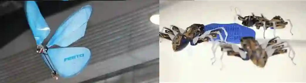 昆虫拥有令人惊叹的运动、弹跳和飞行能力,许多科学家从昆虫的生理机制中汲取灵感,已经开发出不少仿生机器人,例如Festo的蝴蝶机器人、仿生蚂蚁等。