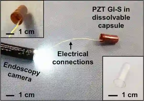 在对于猪的测试中,传感器在内窥镜视角下交付,并成功地粘附住胃黏膜上,并且通过外部连线,可以传递该压电传感器产生的电压大小信息。通过这些信息,研究人员可以计算出胃壁移动情况,以及区分出消化的是食物还是液体。