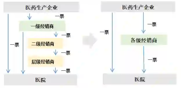其中,两票制是指药品从药厂卖到一级经销商开一次发票,经销商卖到医院再开一次发票;带量采购则是要求药企严格按照协定采购数量提供药品。