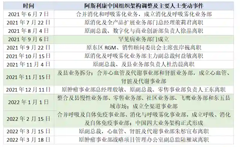 2021年11月,阿斯利康拆分及县业务,一边将及县肿瘤业务合并进肿瘤事业部,另一边又将及县慢性病业务和零售、社区、飞鹰业务整合,新成立全渠道事业部。