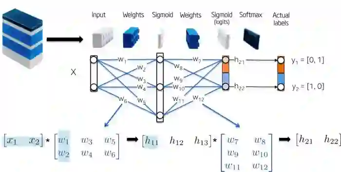上图描述了训练一个神经网络时所用到的部分数学过程。我们将在本文中解释这个。读者可能感到有趣的一点是:一个神经网络就是很多模块以不同的目标堆叠起来。
