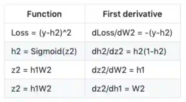 为了帮助记忆,下表列出了上面用到的一些函数定义以及它们的一阶导数: