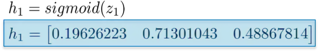 Sigmoid 函数防止隐藏层中的数字落到 0-1 的范围之外。结果就是一个神经激活的数组,h_1 = Sigmoid(WX)。