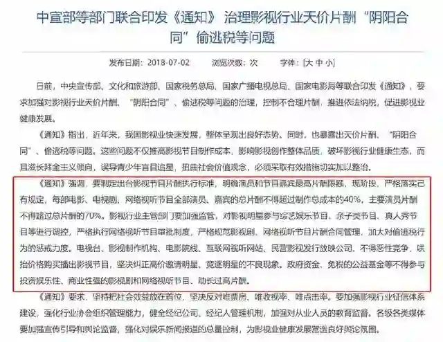 8月11日,优爱腾三大视频网站,联合华策影视、柠萌影业、慈文传媒、耀客传媒、新丽传媒六家制作公司发表了抵制“天价片酬”的声明,且明确指出,“片酬相应产生的税费由演员方承担”——此前,很多艺人在签订合约时都要求“税后收入”,由影视公司代替艺人缴纳个人所得税的现象业内已经十分普遍。