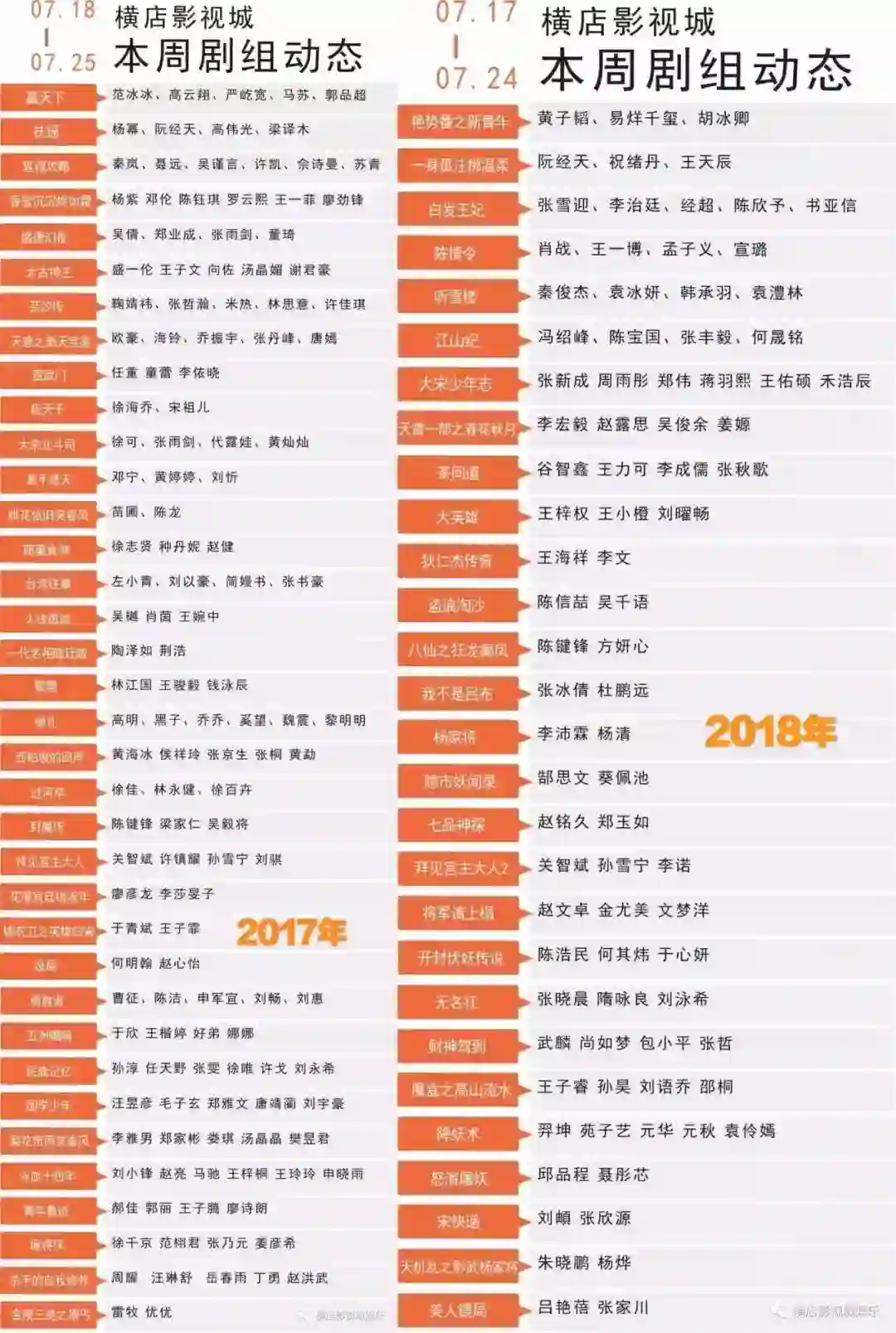 横店影城剧组演员咖位与剧组数量同期对比