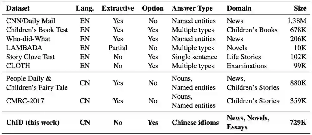 1. 提出了一份全新的、大规模的中文完形填空数据集,进一步丰富了中文领域的机器阅读理解的资源;