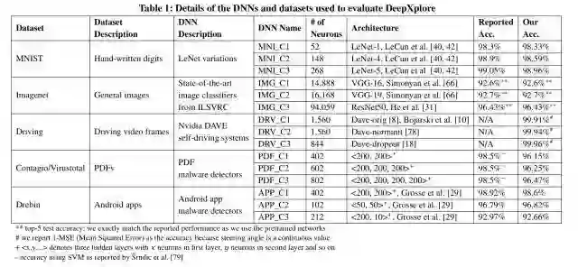 DeepXplore在 3个 DNN上进行了测试,每个 DNN又有 5个不同的数据集。