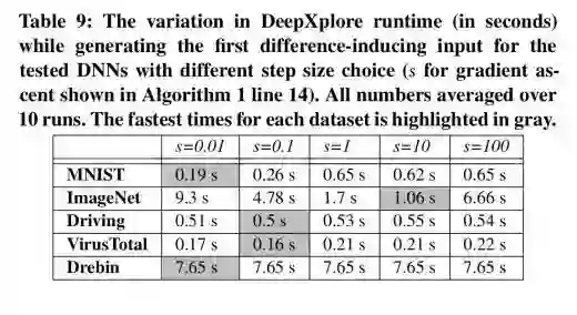 对于大多数模型,DeepXplore都可以在几秒钟内找到第一个引起差异的输入: