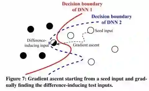 因为 DeepXplore是基于差分测试(differential testing),所以它至少需要两个具有相同功能的 DNN。 取决于你想要做什么,DNN的数量可能是一个限制因素。“但是,我们的评估显示,对于一个给定的问题,在大多数情况下,多个不同的 DNN很容易获得,因为开发人员为了定制化和提高准确性,通常会定义和训练他们自己的 DNN。”给定两个或更多的模型,DeepXplore从一组测试输入开始探索模型空间(model space):