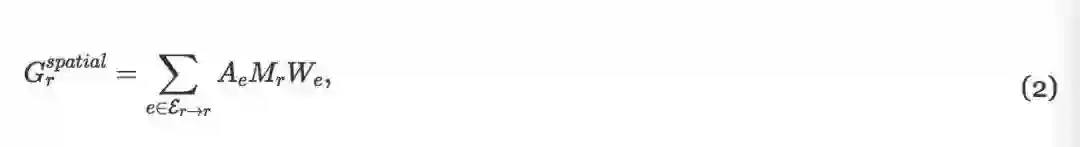 在这里,我们首先通过Aer→c和Wer→c将区域映射到类,将中间特征与类特征Mc相结合,然后在类之间聚集来自多种类型边缘的特征。最后,通过合并这两条路径来计算区域Gr的输出: