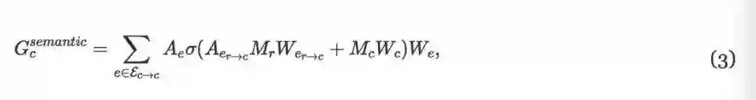 其中Ae∈Rr×r是边缘类型e的邻接矩阵,We∈rd×d是权重(为了简单起见,忽略了偏置)。第二个推理路径是通过类节点的语义路径: