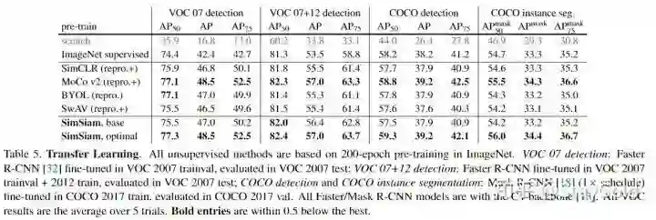 在目标检测任务上迁移,发现本文的方法对比其它方法也是有竞争力的: