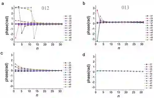 近期,常云杰在葛炳辉副研究员,王玉梅副研究员指导下,以AlN为模型使用数值模拟方法研究了不同厚度不同成像条件下衍射束的相位。研究发现对于普通电镜成像,当样品比较薄的时候,信息极限以内的012衍射斑的相位随着离焦量的变化而变化,但当样品厚度较厚时相位近似为一个常数,且与物体的结构因子的相位基本一致,如图1a所示。通过分离线性和非线性部分发现,当样品较薄时非线性部分的影响可以忽略,线性部分的相位随着离焦量的变化而变化;而当样品较厚时,非线性成像的影响占主导,且非线性部分的相位近似为一个常数,接近结构因子,如图1c所示。对超出线性信息极限的更高频的013衍射的研究可以得到类似的结论,且由于频率更高,013衍射的相位在样品更薄的时候就趋于常数,即对于高频的衍射束,其非线性效应在同等样品厚度下比低频衍射束更显著。利用超出线性信息极限的衍射点013的信息进行结构解析,可分开AlN<110>方向投影的Al-N的哑铃对。也就是说,得益于非线性信息的存在,即使普通的透射电子显微镜也可以得到更高分辨率的结构信息。虽然这其中部分机理还不是很清楚,但提供了一条新的思路,即“变废为宝”,充分利用不可避免的厚样品的非线性效应,为我所用。以上结果发表在Microscopy(2017)。