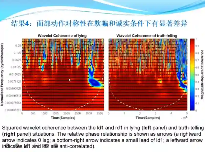 同时,他们也发现诚实和欺骗条件下人物表情动作单元AU20的持续时间有显著差异,欺骗条件下的表情持续时间显著短于诚实条件下的表情持续时间;进一步的分析表明之所以欺骗条件下持续时间短是因为从表情最大幅度到消失的时间更短。