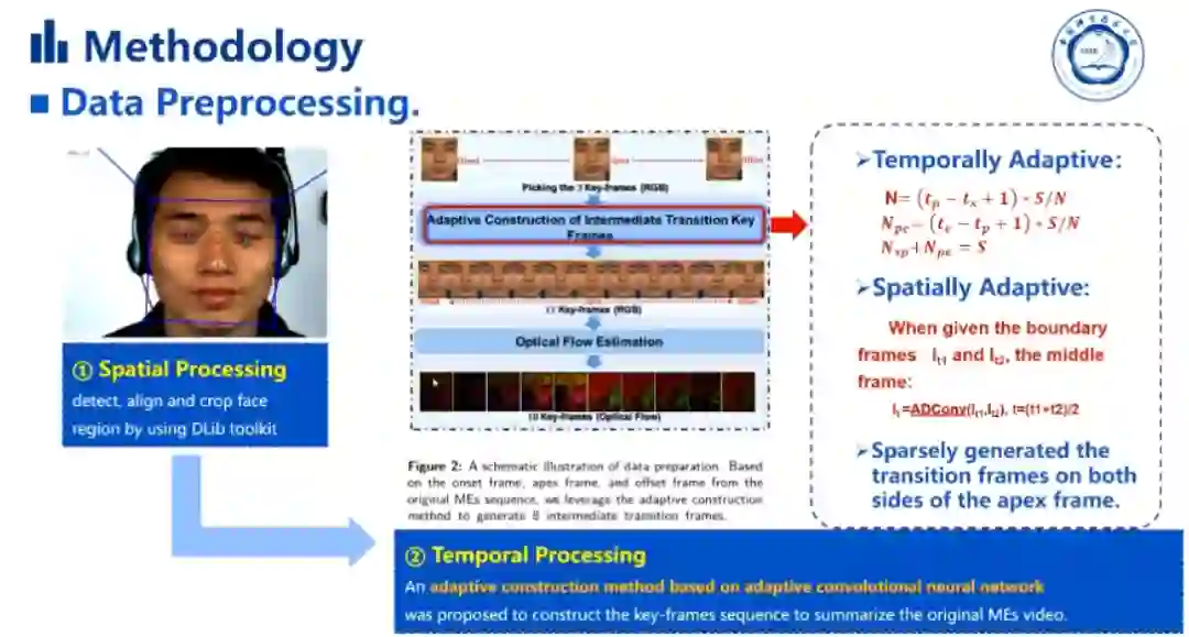 在数据预处理的部分,基于微表情时序分析的必要性以及避免数据冗余等原因,赵同学采用了以峰值帧为中心的微表情关键帧序列表达。