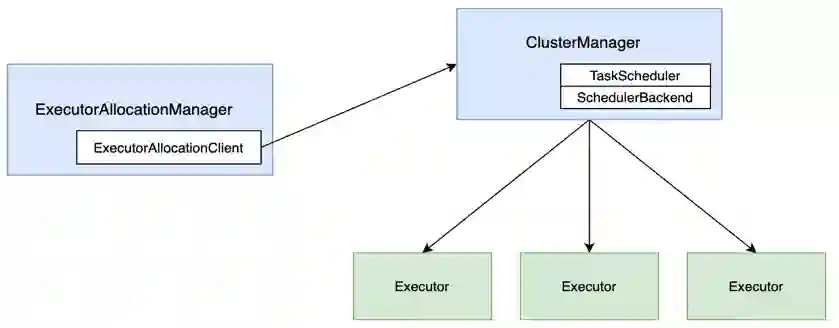 由于历史及技术栈的原因,SOS 基于 Spark 生态的技术构建并运行在 Yarn 上。对于 Spark 的动态资源调度,大家可能知道 Dynamic Resource Allocation,它的原理比较直观,在 ExecutorAllocationManager 组件中启动一个周期性任务监听 Executor 状态,如果 Executor 在一段时间内一直处于空闲状态,则杀掉该 Executor,如果 Executor 一直处于高负载的状态,则增加 Executor 数量。与此同时,为保障处理性能的稳定并且对 Executor 的增减进行约束,可以定义 Executor 数量的最大及最小值。Dynamic Resource Allocation 这个特性常常被应用在 Spark 离线计算中。而怎样杀死或者新增 Executor 呢?如下图所示,借助于内嵌在 ExecutorAllocationManager 中的 ExecutorAllocationClient,可以将计算出的 Executor 的新数量发送给 ClusterManager,由后者完成计算资源的重新调度。
