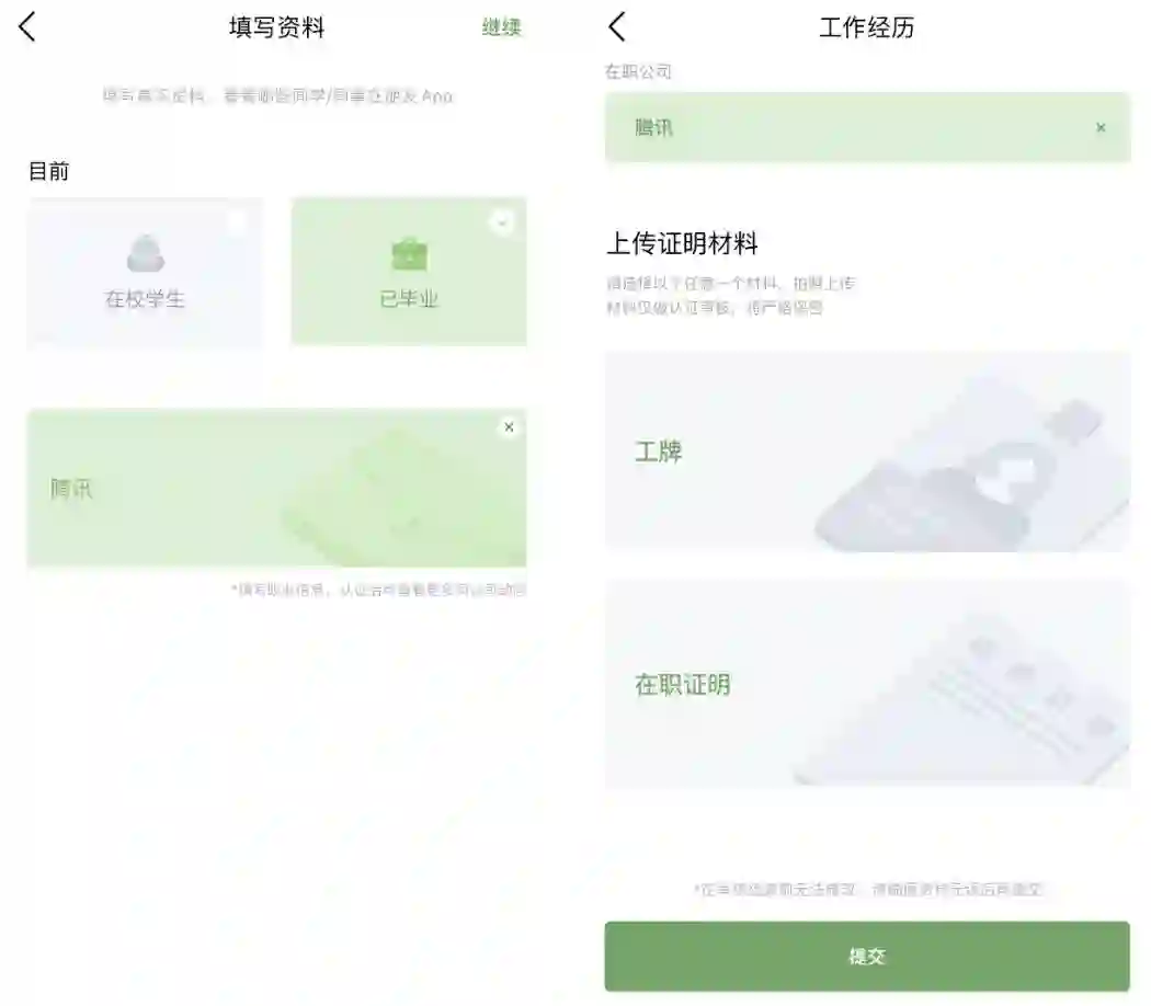 这种上传证件认证的方式,比之前的实名制社交产品人人网严格得多,更像职场社交产品脉脉,用户须提交能够证明职场身份的材料,才能完整体验其主要功能。