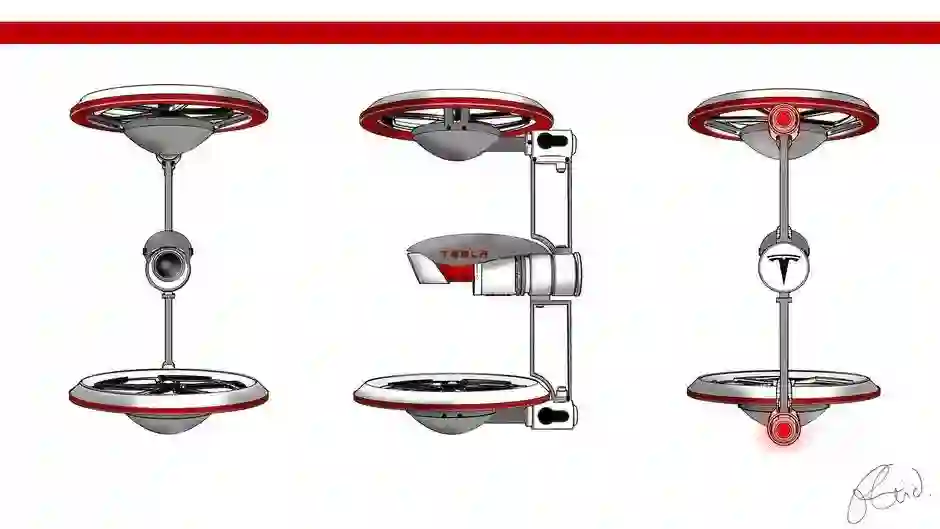 特斯拉无人机Tesla Drone还有一方面比较像直升机,但配置了双设计螺旋桨作为无人机摄像机稳定器来取代传统采用视频稳定的万向节,如需要慢速、广角全景视频的无人机,垂直配置的螺旋桨将使无人机缓慢平稳地移动;如需要快节奏的无人机低角度的动作视频,在水平配置的推进器将使无人机的灵活、快速和容易的以更快的速度处理,同时还能够稳定相机。(图源:tuvie.com)