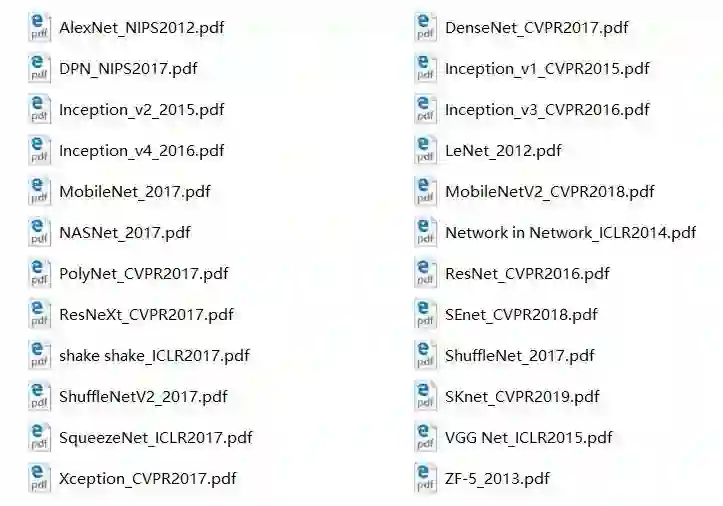 本文整理了一般常用的图像特征提取网络,下图是笔者整理的近年来图像分类网络的论文以及所在期刊,在极市平台公众号后台回复“图像分类”即可获取下载链接。