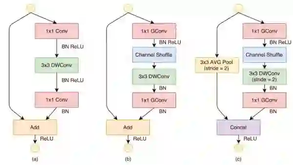 在讲解这篇文章之前,我们首先回顾一下group convolution,它最早由AlexNet提出,当时是由于计算能力不足,然后在ResNeXt中,作者也使用了分组卷积的方式来降低参数量,并增加网络的宽度,效果也很不错!接着我们在说下depthwise convolution, 其在MoblileNet中得到了使用,作者想讲这两种操作相结合,以达到更低参数量的同时精度也能保持的目的。